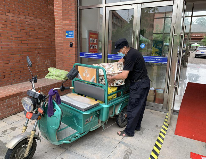 6月12日至20日,安博手机站·官方版在线2020届毕业生陆续返回校园办理毕业手续。有的同学犯了愁:辛辛苦苦收拾了几大包行李,从宿舍搬到几百米外的学校门口,对女孩子来说,确实相当有难度。虽然校园巡逻车可以帮忙,可是汽车内部空间不大,有时还需要跑两三趟。
