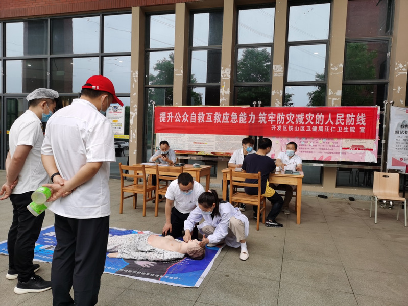 培训前,汪仁卫生院医护人员为师生们测量血压,向参训人员发放宣传手册,讲解人体生命急救的相关知识,进行了心肺复苏操作示范,最后组织参训人员一对一的进行了心肺复苏操作训练。