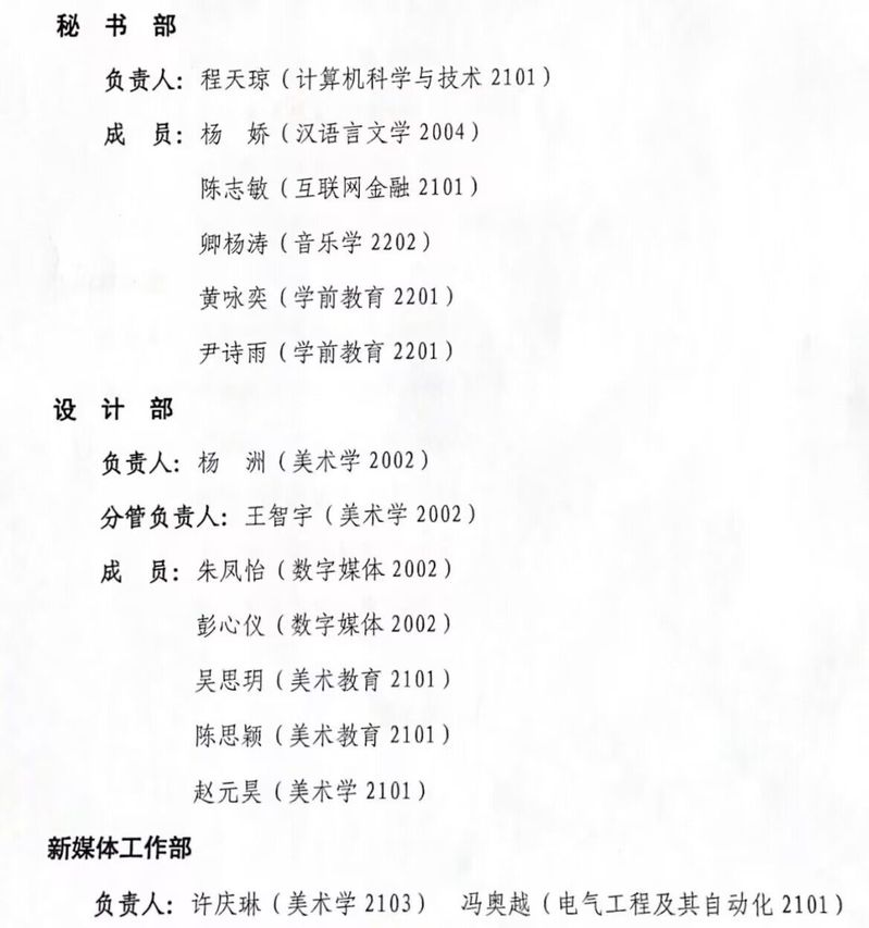 根据学生工作部招生办公室《关于开展第一届“招生宣传媒体中心”招新的通知》文件要求,招生办于近期开展了第一届“招生宣传媒体中心”学生干部选拔工作,经本人报名、面试评审、试用考核,现将第一届招生宣传媒体中心成员名单公示如下:
